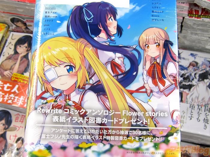 「Rewrite 漫画文选集(コミックアンソロジー) Flower stories」【AA】于10月3日发售。封带宣传语『和她们一起度过的那丰富多彩的日子,再一次重温。大人气游戏「Rewrite」漫画文选集!和超自然研究会的各位一起来享受开心的每一天如何?』,编辑部的告知推特『充满了和超自然研成员开心的每一天♪』。