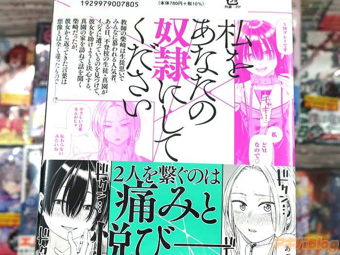裏表紙は『私をあなたの奴隷にしてください』、『2人を繋ぐのは痛みと悦び――』、オビ謳い文句は『あなたがよろこんでくれるなら、どんな恥辱にもまみれます』、『背徳と悦楽の青春SMドラマ、開幕!』だった。