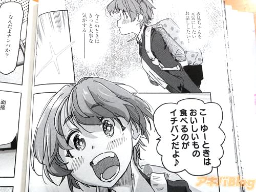 「(汐見ちゃんを元気にしたい、お話したい…)こーゆーときは、おいしいもの食べるのがイチバンだよ♪」