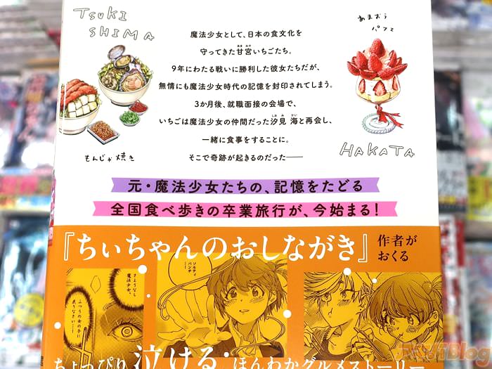 裏表紙は『元・魔法少女たちの、記憶をたどる全国食べ歩きの卒業旅行が、今始まる!』、『「ちぃちゃんのおしながき」作者がおくる、ちょっぴり泣ける、ほんわかグルメストーリー』で、コミックス情報は『かわいくてちょっぴり泣ける、魔法少女×グルメの新食感アフターストーリー!』などになってる。