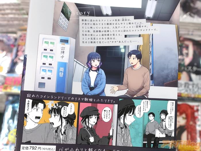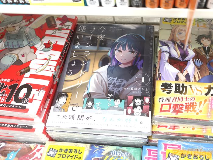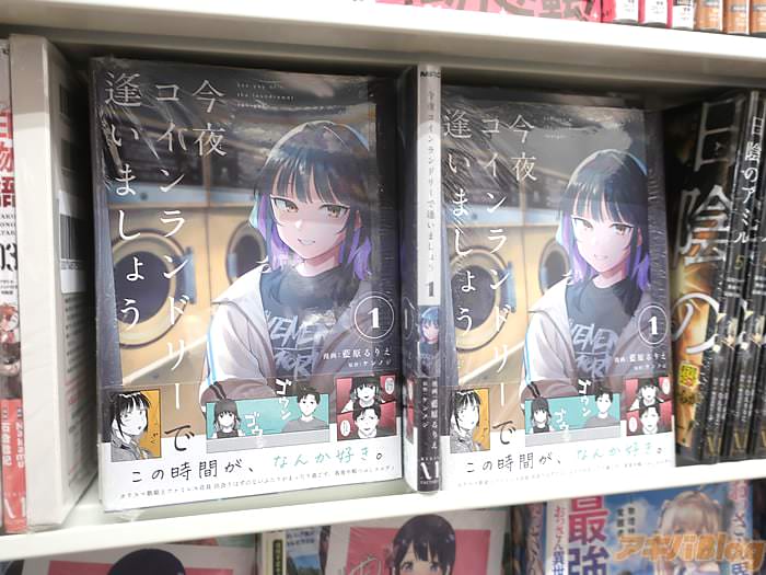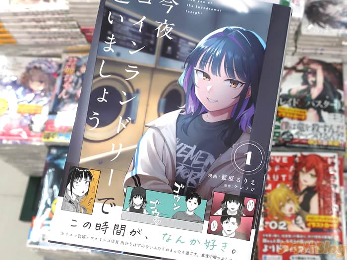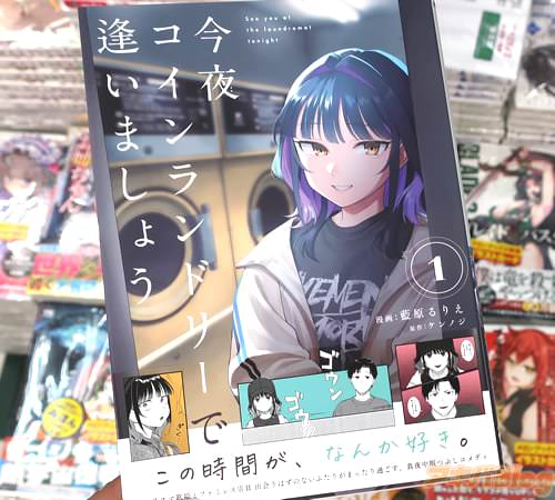 原作:ケンノジ&漫画:藍原るりえ的漫画「今夜コインランドリーで逢いましょう」第1卷【AA】于21日迎来官方的发售日。裏表紙は『寂れたコインランドリーでふたりきり』、オビ謳い文句は『カリスマ歌姫とファミレス店員。出会うはずのないふたりがまったり過ごす、真夜中暇つぶしコメディ』。