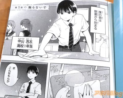 なお、コミックス情報は『潔癖をこじらせた高校生・中山は、自分だけのキレイな世界を守るため、細心の注意を払いながら高校生活を過ごしていた。しかし、やたらと距離が近い隣の席の西野さんがお構いなしに絡んできて…?煩わしいはずなのに、気づけば心がざわついてしまう――。潔癖こじらせ男子×天真爛漫女子の、胸いっぱいの青春ラブコメディ!』などになってる。