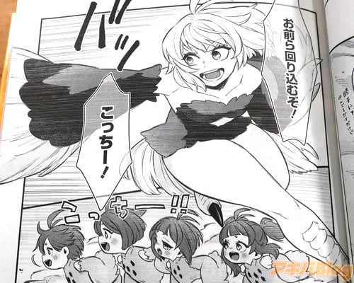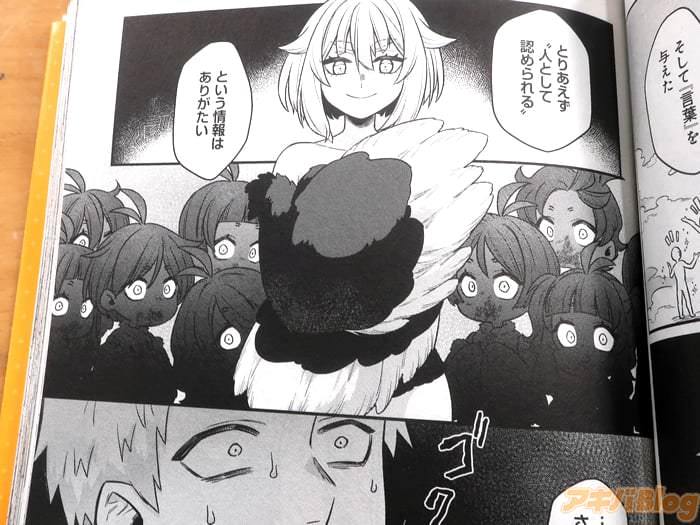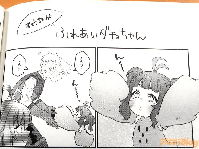 なお、原作:「ダチョウ獣人のはちゃめちゃ無双」1巻【AA】のカバー折り返しで、『ダチョウ獣人ちゃん、とてもかわいいですね。何でもあげたくなっちゃいます。みんなも高原に行ってダチョウちゃんにごはんをあげましょう!』、作画:鞠助氏の