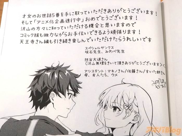 後書きでは『「アニメ化企画進行中」おめでとうございます!沢山の方々に知っていただける機会と思いますので、コミック版も微力ながらお手伝いできるよう頑張ります!天王寺さん編も引き続き楽しんでいただけたらうれしいです』などを書かれている。