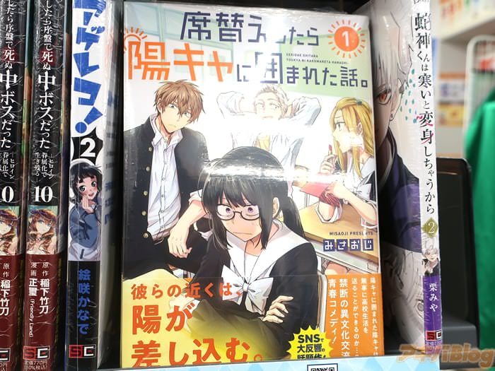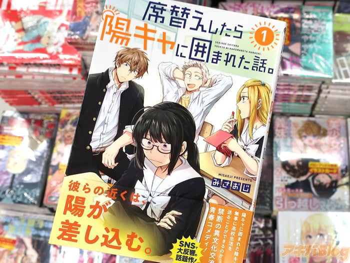 みさおじ氏のコミックス「席替えしたら陽キャに囲まれた話。」1巻【AA】が22日に発売になった。裏表紙は『陽キャに囲まれた陰キャ、絶対絶命!?しかし彼らはなんだか温かい』でオビは『陽キャに囲まれた陰キャは無事に高校生活を送ることができるのか…?禁断の異文化交流青春コメディ!』だった。