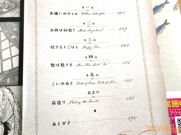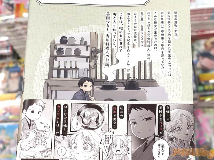また、コミックス情報は『地のもの食べて町と人を知っていく、英国少女と、青年料理人のお話』などで、オビ謳い文句は『英国少女がはじめて出会う「おいしい♪」』、『明治の港町・新潟で紡がれる、グルメ×ガール・ミーツ・ボーイ!』だった。