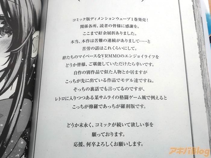 今回発売になったコミカライズ「ディメンションウェーブ」1巻【AA】には、「盾の勇者の成り上がり」アネコユサギ最新作!』、『仲間と力を合わせハードなVRMMOを攻略せよ!』だった。