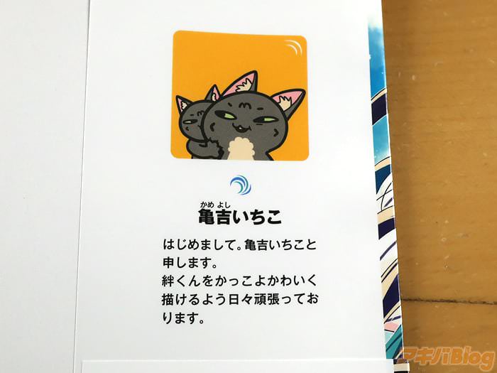 カバー折り返しで『絆くんをかっこよかわいく描けるよう日々頑張っております』、 後書きでは『小説の方めっちゃ面白く、面白かっこよく表現できたら嬉しいな~と思います!』などを書かれている。
