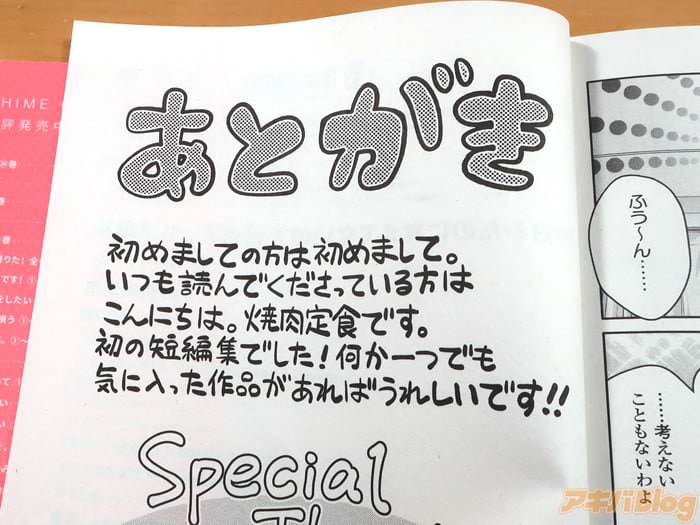 後書きで『初の短編集でした!何か一つでも気に入った作品があればうれしいです!』などを書かれている。
