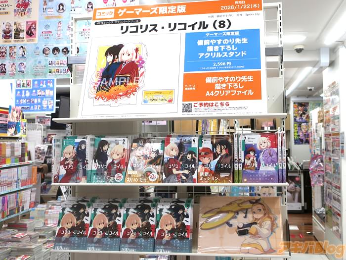 第36話~第40話を収録し、発売日のアキバではアニメイト秋葉原2号館の階段まわりに「リコリス・リコイル」ポスター