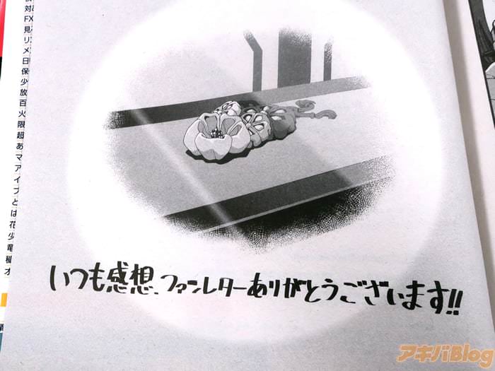 巻末コメントは『いつも感想、ファンレターありがとうございます!』などを書かれている。