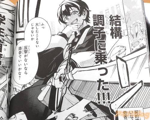 もくじ)、折込チラシは『虚勢はやがて最強へ至る!』になっていて、オビ謳い文句は『「俺はずっと――全力なんだよ…!」』、