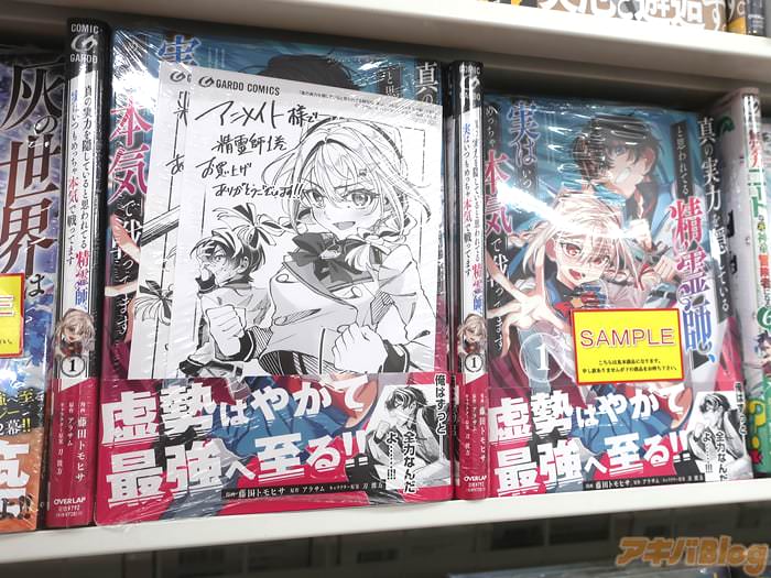 アラサム氏の小説を藤田トモヒサ氏がコミカライズされ、コミックガルドで連載されている「真の実力を隠していると思われてる精霊師、実はいつもめっちゃ本気で戦ってます」1巻【AA】(キャラクター原案:刀彼方氏)が、アキバではもう出てる(公式発売日は25日)。
