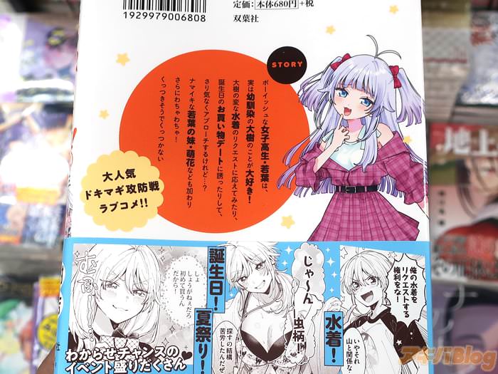 裏表紙が『くっつきそうでくっつかない、大人気ドキマギ攻防戦ラブコメ!』、『水着!誕生日!夏祭り!わからせチャンスのイベント盛りだくさん♥』、