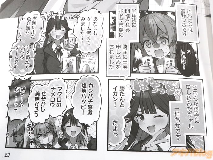 赤城ナツイチ的初単行本・4コマ漫画「きみとボドゲが作りたい!」第1卷【AA】于27日发售。オビ謳い文句は『私以外、全員ギャル!?』、『クラスのギャルにボードゲームを自作してることがバレた』、裏表紙は『陰キャ一人、ギャルたくさんのボドゲ制作4コマ開幕!』などになってた。
