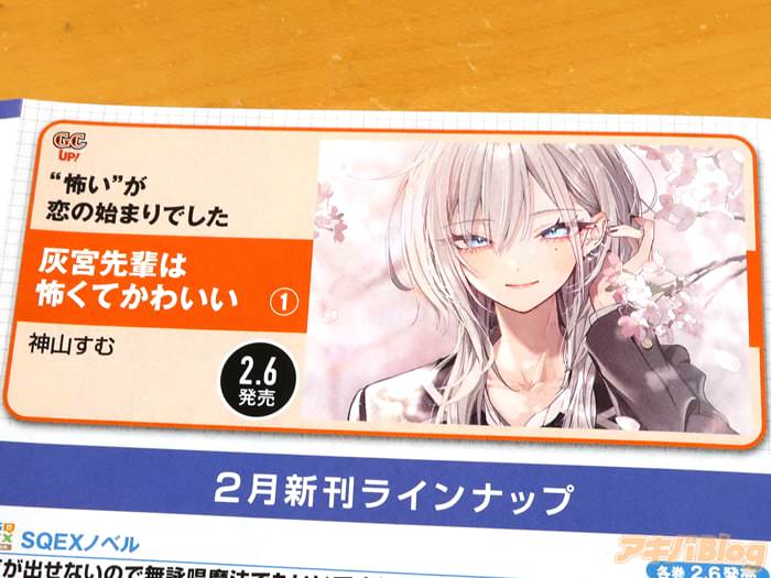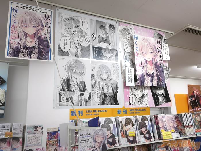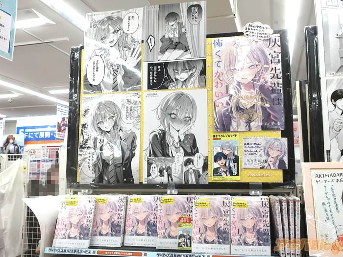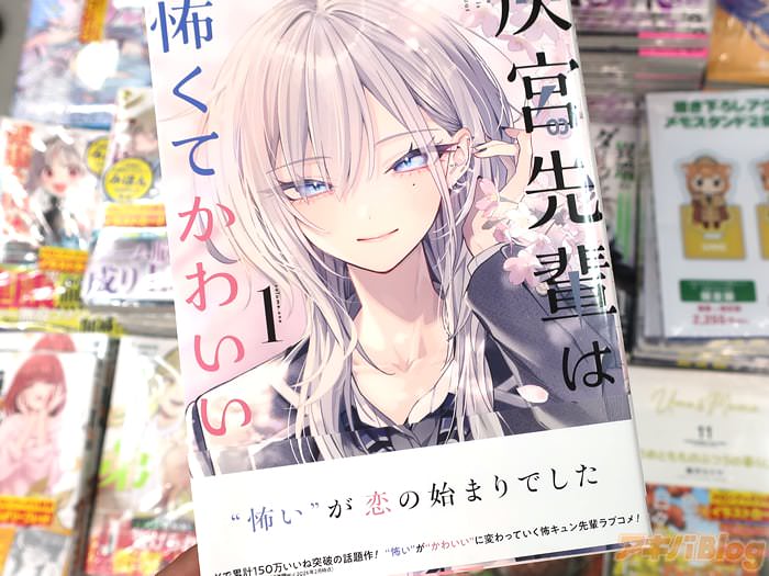 神山すむ氏的漫画「灰宮先輩は怖くてかわいい」第1卷【AA】于6日发售。販促POPは『銀髪ウルフ関西弁のめっちゃ怖い先輩が、なぜか主人公に優しくて…?』、オビが『怖いがかわいいに変わっていく怖キュン先輩ラブコメ!』、裏表紙は『怖いと有名な先輩が、僕にだけは優しい』などだった。