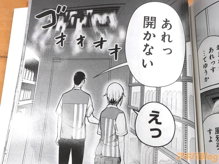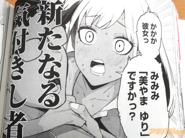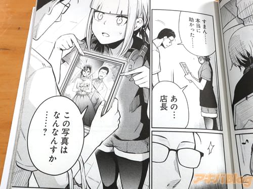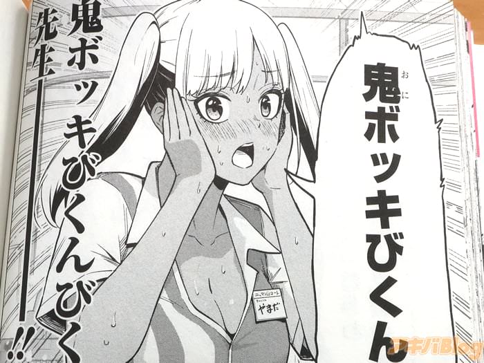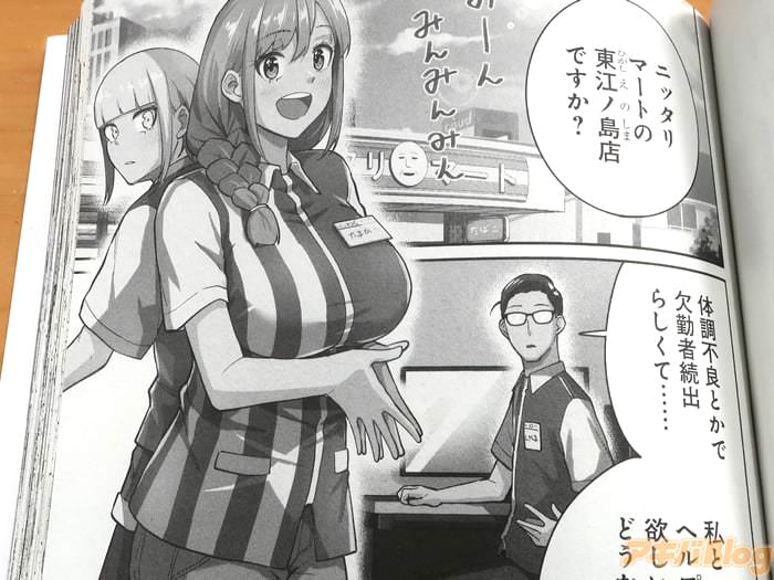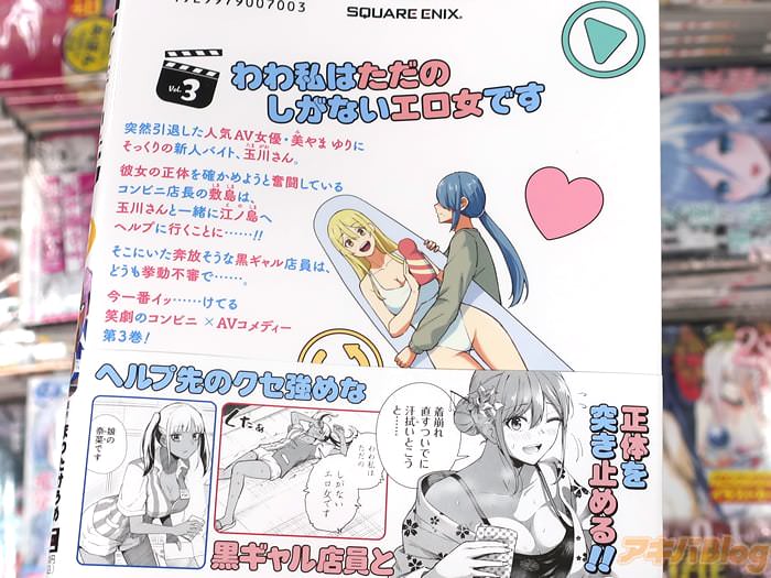 裏表紙は『わわ私はただのしがないエロ女です』、『ヘルプ先のクセ強めな黒ギャル店員と正体を突き止める!』で、オビ謳い文句は『も…もしかして彼女、◯V女優ですか?』、『重版続々!コンビニ舞台の超妄想コメディー!』だった。