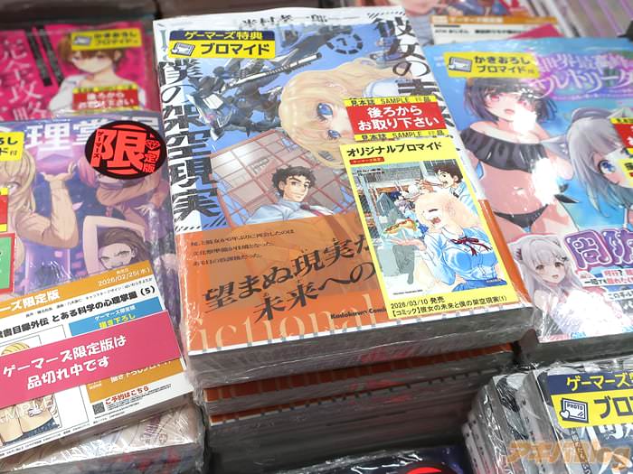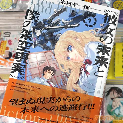 米村孝一郎氏のコミックス「彼女の未来と僕の架空現実」1巻【AA】がアキバではもう出てる。裏表紙は『現実と未来の狭間で彼女が下した決断とは…!?』、『実機体験型SLG「機重動騎徨星譚」――その架空現実に彼女は救いを求める』で、オビ謳い文句は『望まぬ現実からの未来への逃避行!!』だった。