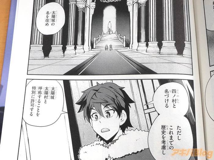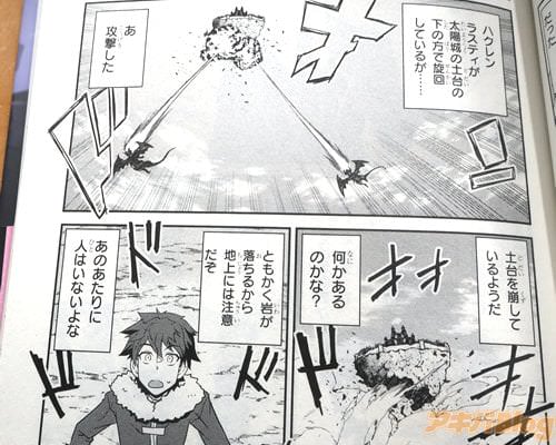 裏表紙は『いつも通りの日々を過ごす大樹の村に突如現れた天空の城・太陽城』、『毎度のことながらトラブルは突然に…』などだった。