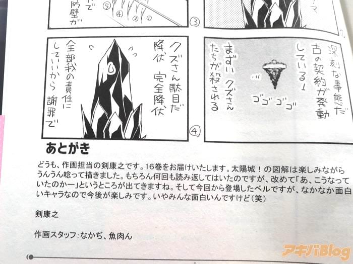 あとがきで『太陽城!の図解は楽しみながらうんうん唸って描きました。そして今回から登場したベルですが、なかなか面白いキャラなので今後が楽しみです。いやみんな面白いんですけど(笑)』、カバー折り返しでは『表紙のイラストは、ウルザとグラルとヒラクの珍道中な感じですがいかがでしょうか』などを書かれている。