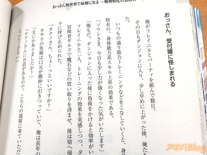 後書きで『ソウシ氏の活躍はまだまだこれからです。すでに物理特化の道を歩みつつあるおっさんの最強への道のりを、今後もお楽しみください』などを、漫画:来須眠氏は同じく