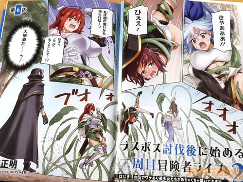 朱月十話的轻小说、鬼麻正明作画的漫画版「ラスボス討伐後に始める二周目冒険者ライフ」第2卷【AA】于秋叶原26日发售。コミックス情報は『女神の奇跡で蘇ったマイトは冒険者をやり直す』、オビは『ワケあり&クセつよ美少女たちとのハーレムファンタジー!』。