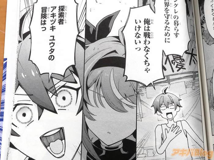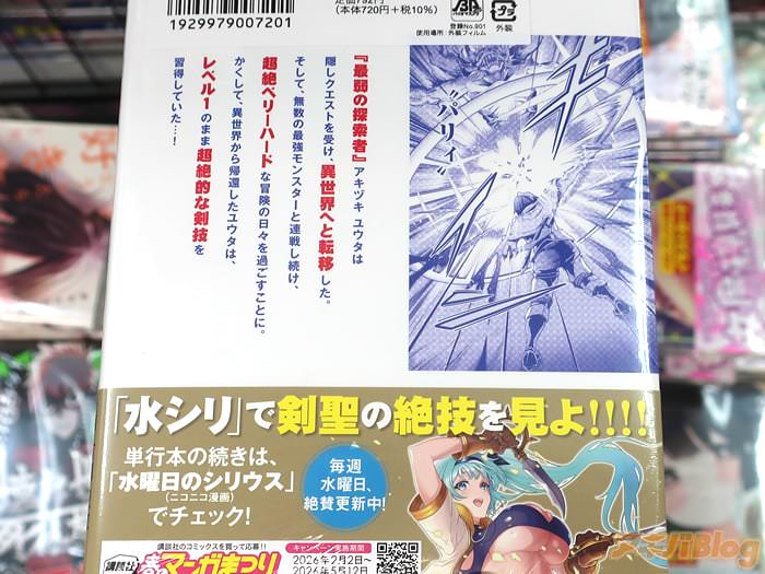 裏表紙は『“最弱の探索者”アキヅキユウタは隠しクエストを受け、異世界へと転移した。そして、無数の最強モンスターと連戦し続け、超絶ベリーハードな冒険の日々を過ごすことに。かくして、異世界から帰還したユウタは、レベル1のまま超絶的な剣技を習得していた…!』になってた。