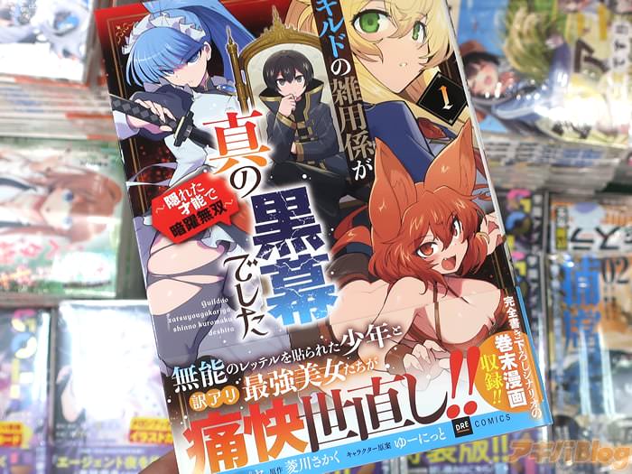 菱川さかく氏の小説をパヤパヤ(=さんじろ♨)氏がコミカライズされ、DREコミックスで連載中の「ギルドの雑用係が真の黒幕でした ~隠れた才能で暗躍無双~」1巻【AA】(キャラクター原案:ゆーにっと氏)が、アキバではもう出てる(公式発売日は20日)。