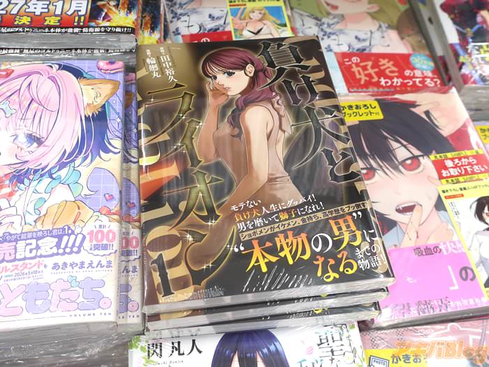 原作:田中裕久&漫画:輪廻丸的漫画「負け犬とライオン」第1卷【AA】于20日发售。オビ謳い文句は『モテない負け犬人生にグッバイ!男を磨いて獅子になれ!ショボメンがイケメン、金持ち、高学歴をブッ倒す!』、裏表紙は『幼馴染をネトラレて、クソ弱男子、立ち上がる!』になってた。