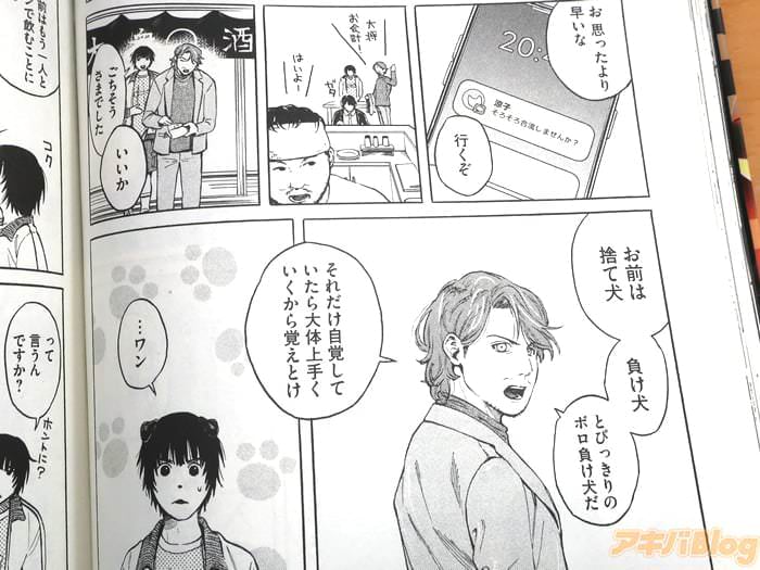 『負け犬とライオン』は、コミックナタリーによると『大学生の陸は、長年付き合った幼なじみの彼女・若菜を寝取られてしまう。失意の底にいた陸は、偶然出会った謎のイケオジ・雄二から、「モテ方を教えてやる」と手ほどきを受けることになり…』で始まるお話。