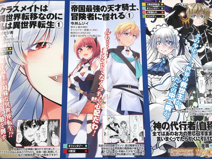 蒼井美紗的轻小说、今井ムジイ作画的漫画版「帝国最強の天才騎士、冒険者に憧れる」第1卷【AA】于秋叶原21日发售、裏表紙が『若くして騎士団長となった剣と魔法の天才。彼が真に憧れていたのは冒険者!帝国最強の騎士は、新人冒険者として世界を巡ることに!』などだった。