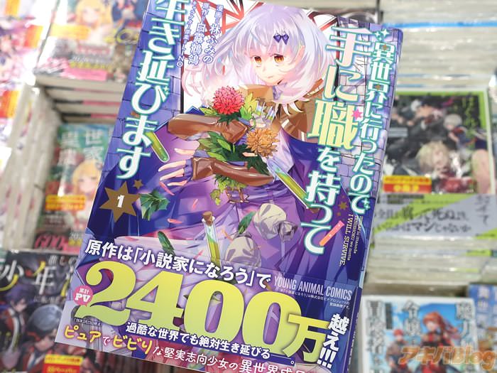 白露鶺鴒的小説、林ふみの作画的漫画版「異世界に行ったので手に職を持って生き延びます」第1卷【AA】于28日发售。裏表紙は『過酷な世界を、堅実に歩み始める少女の異世界成長譚!』、オビ謳い文句が『ピュアでビビりな堅実志向少女の異世界成長譚!』などだった。