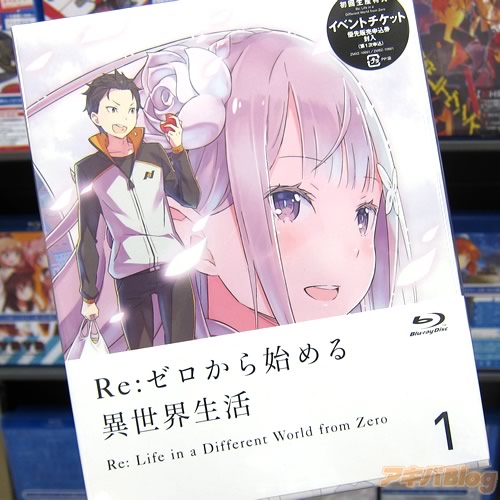 动画「Re:从零开始的异世界生活(Re:ゼロから始める異世界生活)」BD第1卷【AA】于6月23日发售。收录第1话「开始的终结、终结的开始(始まりの終わりと終わりの始まり)」・第2话「再会的魔女(再会の魔女)」,初回生产特典为原作・長月達平新写的约290P的小说「Re:从零开始的前日谭 冰结之绊(Re:ゼロから始める前日譚 氷結の絆)」等。