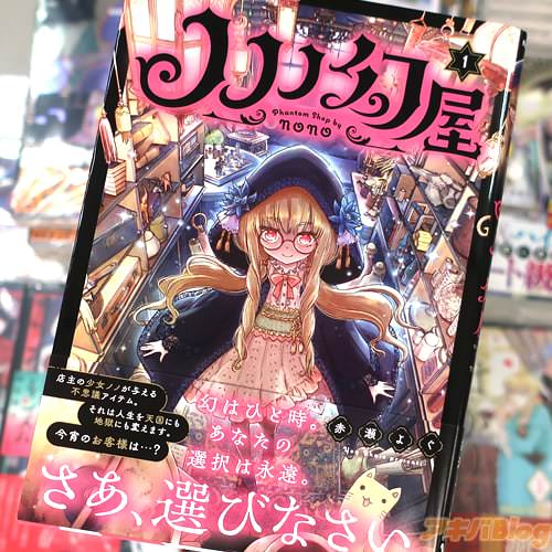 赤瀬よぐ氏のコミックス「ノノノ幻屋」1巻【AA】がアキバでは20日に発売になり、裏表紙は『抱えきれない願いを持つ者が引き寄せられるように、突然現れる不思議な「幻屋」。ここでは、来訪者が望む願いを叶えることができるアイテムを、店主のノノが与えてくれる。ただし、その代償は…』だった。