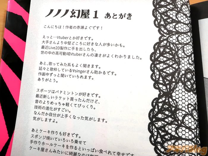 後書きでは『というわけで「ノノノ幻屋」は毎回主人公違うオムニバス形式のお話だけど、ずっと好きなジャンルで漫画が描けて楽しかったです!自分は無駄に多趣味で器用貧乏なので、他にもいろいろ描いてみたいジャンルが沢山ありますです。さあ、次のお客様は誰かしら!?』などを書かれている。