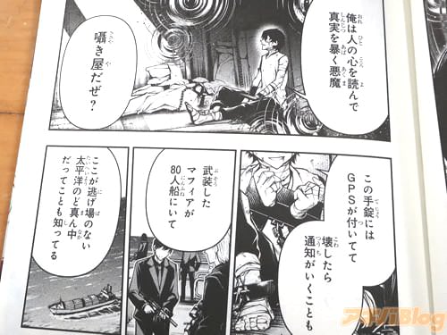 「俺は人の心を読んで真実を暴く悪魔、囁き屋だぜ?この手錠にはGPSが付いてて、武装したマフィアが80人船にいて、ここが太平洋のど真ん中だってことも知ってる」