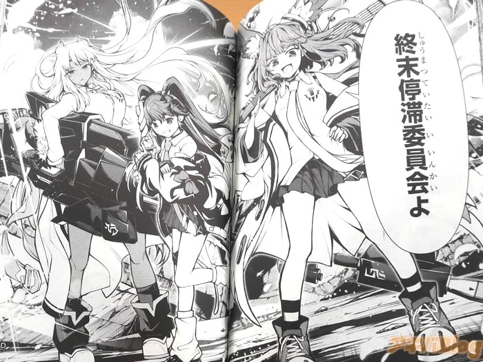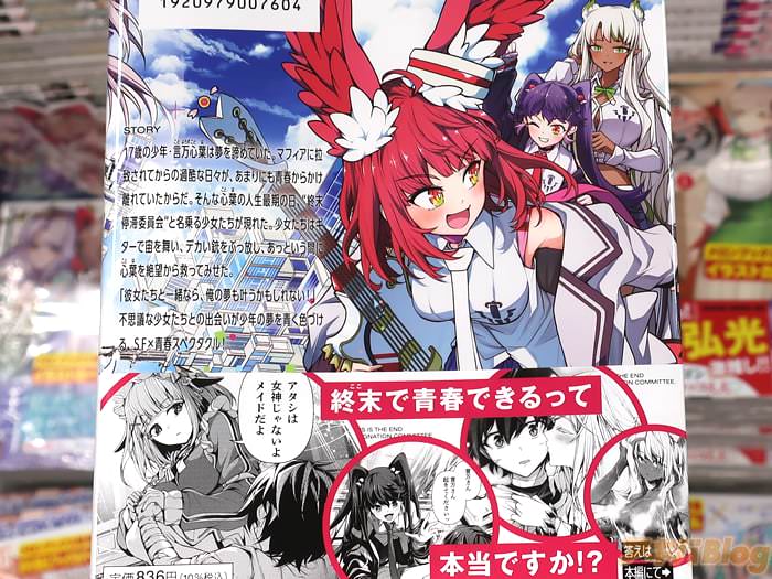裏表紙は『17歳の少年・言万心葉は夢を諦めていた。マフィアに拉致されてからの過酷な日々が、あまりにも青春からかけ離れていたからだ。そんな心葉の人生最期の日、“終末停滞委員会”と名乗る少女たちが現れた。少女たちはギターで宙を舞い、デカい銃をぶっ放し、あっという間に心葉を絶望から救ってみせた。「彼女たちと一緒なら、俺の夢も叶うかもしれない!」』などになってた。