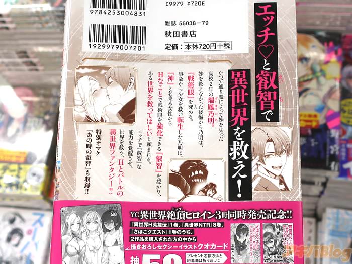 オビ謳い文句は『エッチで叡智(えいち)の能力を覚醒させよ!』、『人類vs.魔物、壮絶な防衛戦に天才戦略家が出現!』になってた。