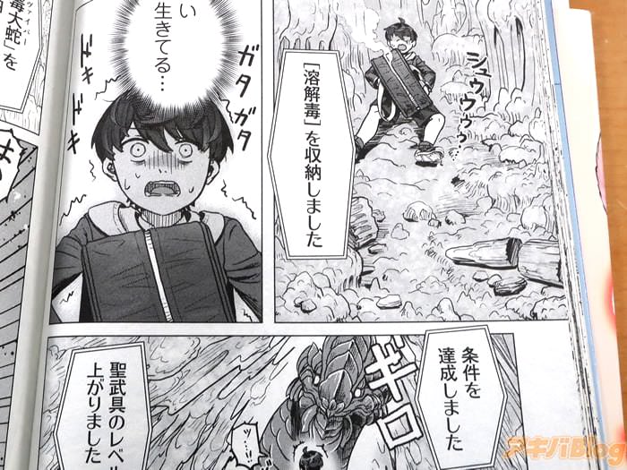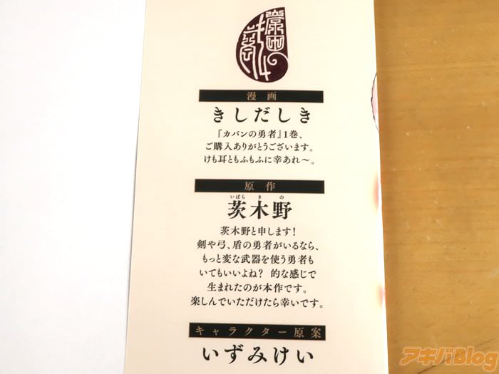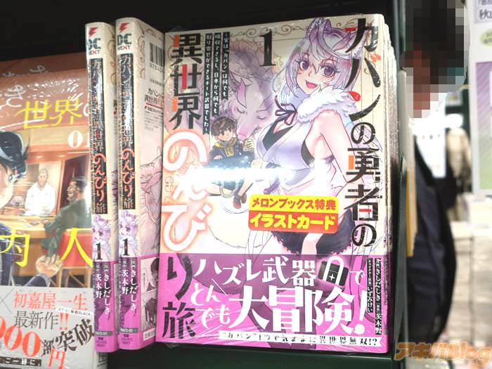 茨木野的小説、きしだしき作画的漫画版「カバンの勇者の異世界のんびり旅」1巻【AA】がアキバではもう出てる。裏表紙は『追放勇者の無敵の大逆転劇――はじまる!』で、オビ謳い文句は『ハズレ武器でとんでも大冒険!』などだった。