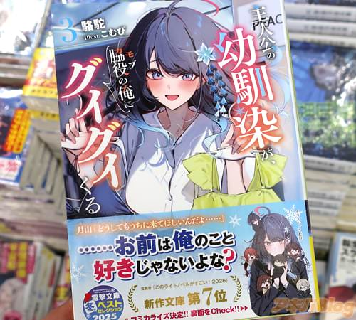 電撃文庫12月新刊、著:「主人公の幼馴染が、脇役の俺にグイグイくる」3巻【AA】が、10日に発売になった。
