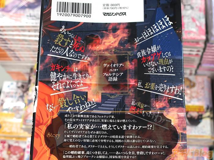 裏表紙は『成り上がり新興貴族であるフォルテシア家。その長女ヴァイオリアがある日、実家に帰ると家が燃えていた。そしてなぜか連行され、王城で婚約者である第7王子ダクターの暗殺未遂で糾弾される。「この婚約破棄、高くつきましてよ。…あいつら全員、皆殺しですわァーッ!」。倫理観ぶっ飛びブロークンお嬢様は、国家転覆を決意する!!』だった。