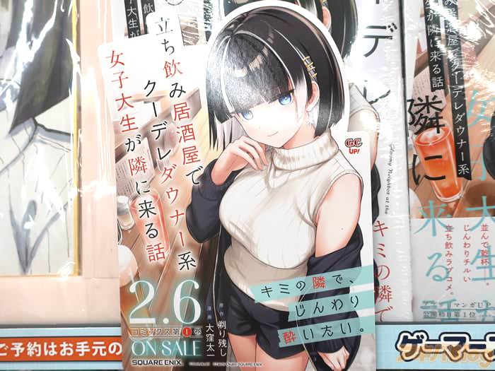 剃り残し的Web小説、大窪太一作画的漫画版「立ち飲み居酒屋でクーデレダウナー系女子大生が隣に来る話」第1卷【AA】于6日发售。裏表紙は『立ち飲み居酒屋で出会った、“アラサー会社員”と“クールな女子大生”』、オビ謳い文句は『じんわりチルい立ち飲みラブコメ』などなど。