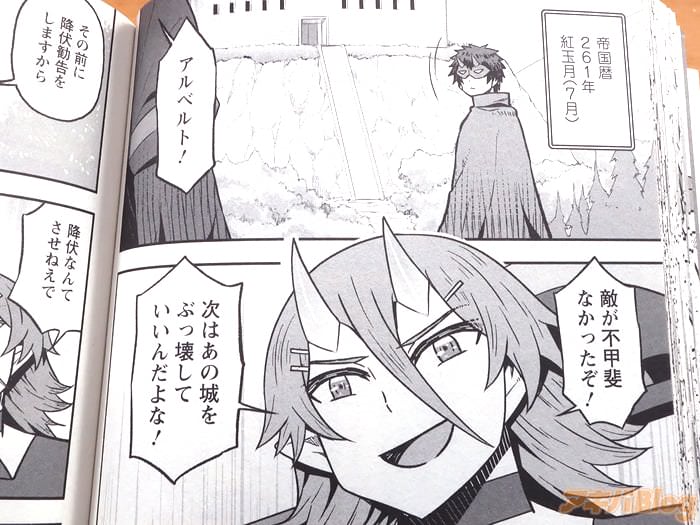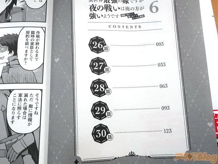 もくじ)、コミックス情報は『現代知識を活かしたハーレムファンタジー第六幕!』、オビ謳い文句は『鬼人族の力と軍師の知略で難攻不落の城を攻め落とせ!』だった。また、