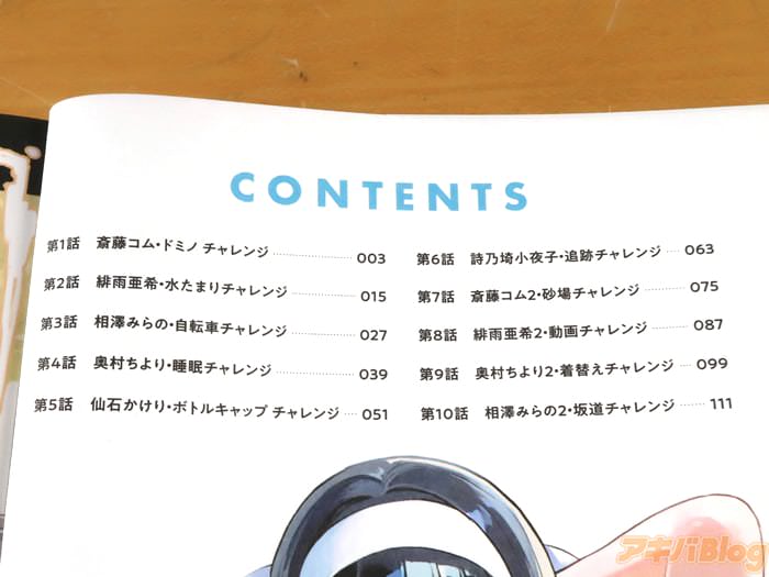 第1話~第10話の「斎藤コム・ドミノチャレンジ」・「緋雨亜希・水たまりチャレンジ」・「相澤みらの・自転車チャレンジ」・「奥村ちより・睡眠チャレンジ」・「仙石かけり・ボトルキャップ チャレンジ」・「詩乃埼小夜子・追跡チャレンジ」・「斎藤コム2・砂場チャレンジ」・「緋雨亜希2・動画チャレンジ」・「奥村ちより2・着替えチャレンジ」・「相澤みらの2・坂道チャレンジ」を収録し、