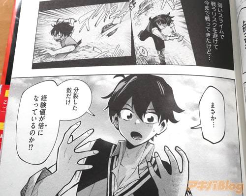 『最速進化のスライム無双』は、艇駆いいじ氏がWEB小説サイト「小説家になろう」で発表され、商業書籍化もされている作品のコミカライズで、コミックナタリーによると『冒険者パーティ“残忍な刃”に所属していたアルクスは、スキルが戦闘に役立たないという理由で追い出されてしまう。アルクスのスキル“スライム”は、体をスライムに変身させ、その分身を作り出せるという能力。弱いスライムになっても見張りくらいしかできることはないとアルクス自身も思っていたが、その能力には秘密が隠されていた』というお話。