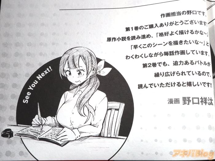 あとがきで野口祥汰氏は『原作小説を読み進め、「格好よく描けるかな~」、「早くこのシーンを描きたいな~」と、わくわくしながら毎話作画しています。第2巻でも、迫力あるバトルが繰り広げられているので、読んでいただけると嬉しいです!』などを書かれている。