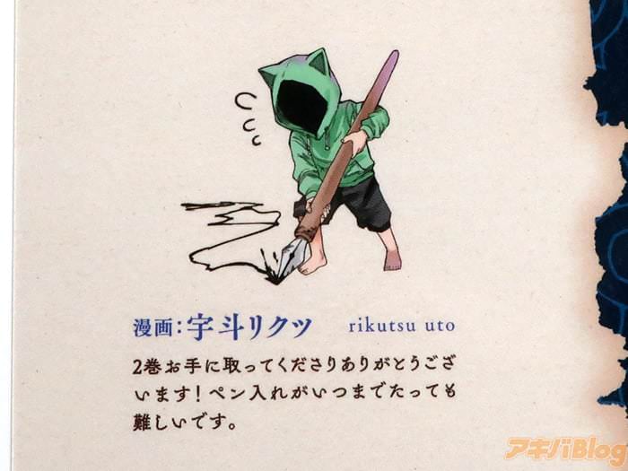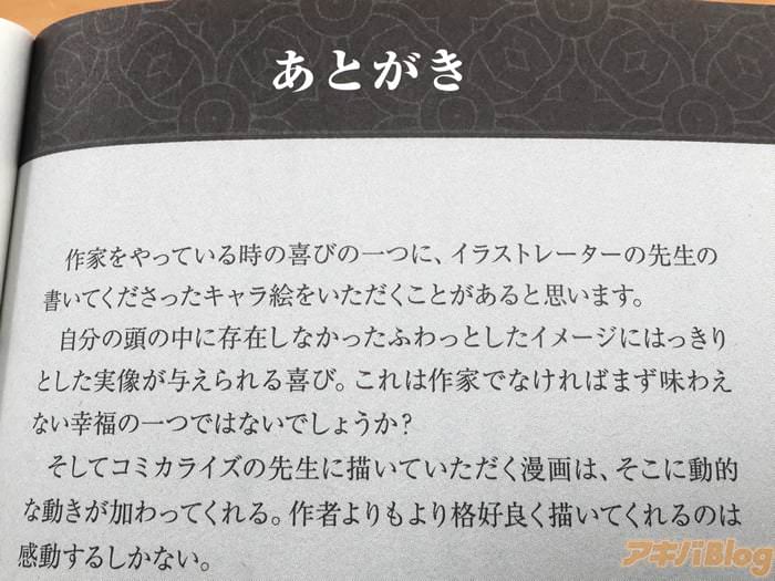 あとがきで『作家をやっている時の喜びの一つに、イラストレーターの先生の書いてくださったキャラ絵をいただくことがあると思います。ふわっとしたイメージにはっきりとした実像が与えられる喜び』、漫画:宇斗リクツ氏は