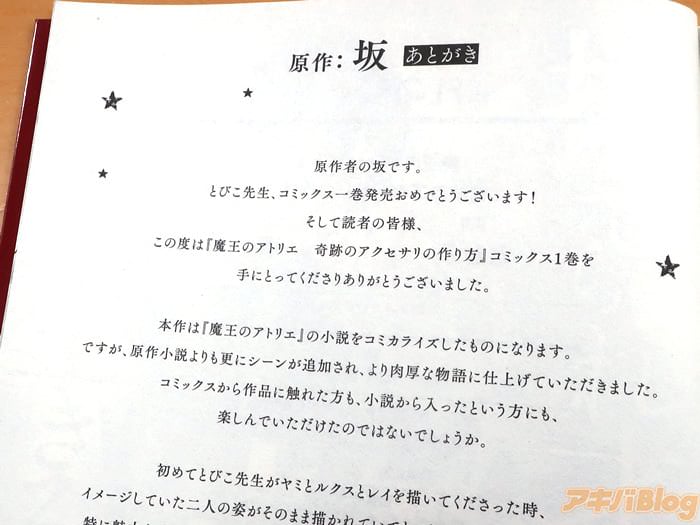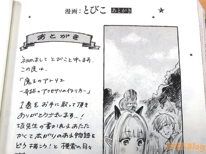 坂氏的轻小说、とびこ作画的漫画版「魔王のアトリエ 奇跡のアクセサリの作り方」第1卷【AA】于秋叶原15日发售。魔王ヤミをヒロインにし、コミックス情報は『心温まる異世界ファンタジー!』、裏表紙は『勇者がいない世界で紡がれる、出会いと再生の物語』などだった。