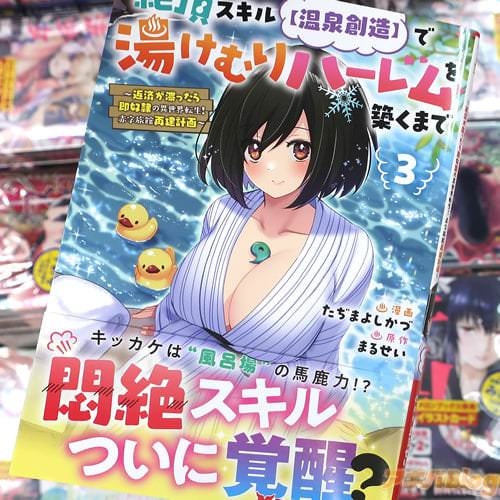 原作:まるせい&漫画:たぢまよしかづ的漫画「絶頂スキル【温泉創造】で湯けむりハーレムを築くまで」第3卷【AA】于秋叶原发售、コミックス情報は『誰でもイカせる絶頂スキル【温泉創造】で赤字旅館を再建させろ!?ちょっぴりHな異世界ハーレム!』などになってる。