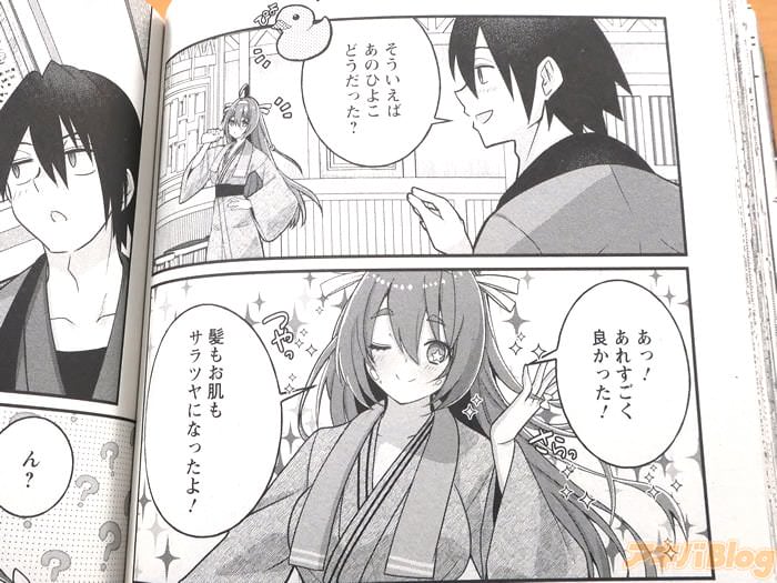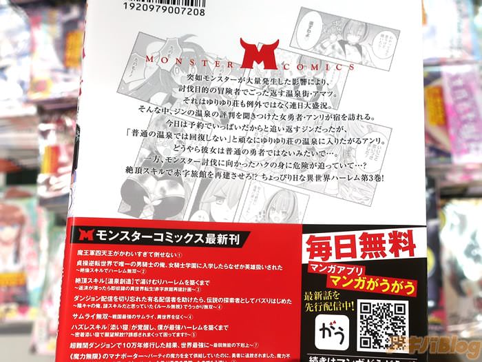 オビ謳い文句が『キッカケは“風呂場”の馬鹿力!?悶絶スキルついに覚醒?』で、コミックス情報は『誰でもイカせる絶頂スキル【温泉創造】で赤字旅館を再建させろ!?ちょっぴりHな異世界ハーレム第3巻!』などになってる。